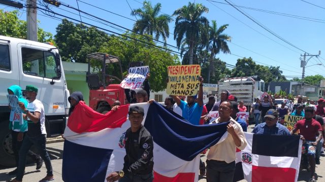 Los trabajadores marcharon por el poblado de Don Gregorio, provincia Peravia, próximo a las instalaciones de las plantas a carbón. Los manifestantes correaban consignas y con pancartas en manos exigiendo sus honorarios.