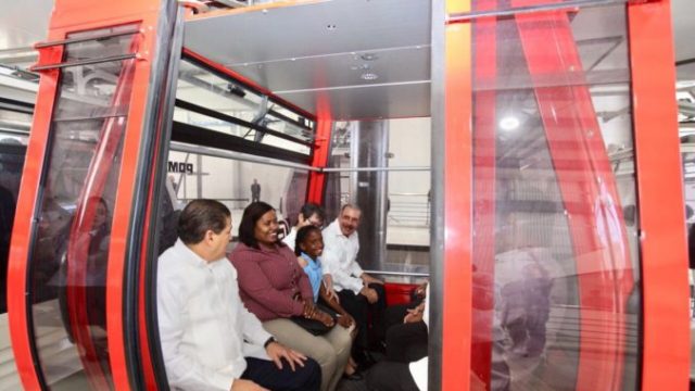 El presidente Danilo Medina recorrió en el Teleférico de Santo Domingo el primer tramo desde la estación 3, en Sabana Perdida, hasta la Estación 4, en la avenida Charles de Gaulle, ambas ubicadas en el municipio Santo Domingo Norte.